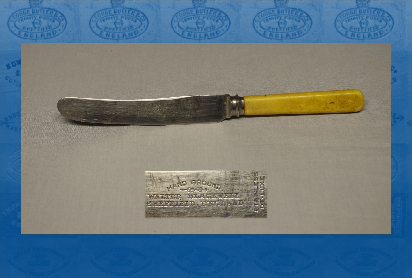 Walter Blackwell (1883-1955) was born in Sheffield, the son of Isaac (a spring knife cutler) and Eliza née Hudson. Walter became a table knife hafter. During the early 1920s, he made ‘hand ground’ stainless table knives, marked with his own name. In about 1924, when he lived at Lydgate Lane, he launched Blackwell & Marsden. His partner was Joseph Marsden (1872-1956), who lived at 53 Holme Lane, Hillsborough. The latter had been born at Unstone, Derbyshire, and was the son of William (....