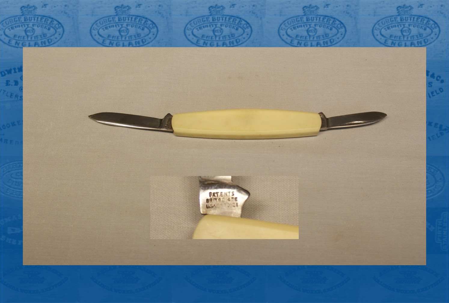 Roger Inman (1915-2013) registered the patents on this knife in the UK and USA in 1957/58. It is an unusual pattern. Inman was the co-managing director of Harrison Fisher & Co Ltd. Since the knife does not carry the Harrison Fisher name, this particular knife may have been a prototype. He was also a director at Taylor's Eye Witness and at John Sanderson & Son as well as being the President of the Sheffield Cutlery Manufacturers' Association and the chairman of the Cutlery and Allied Trades Researc....