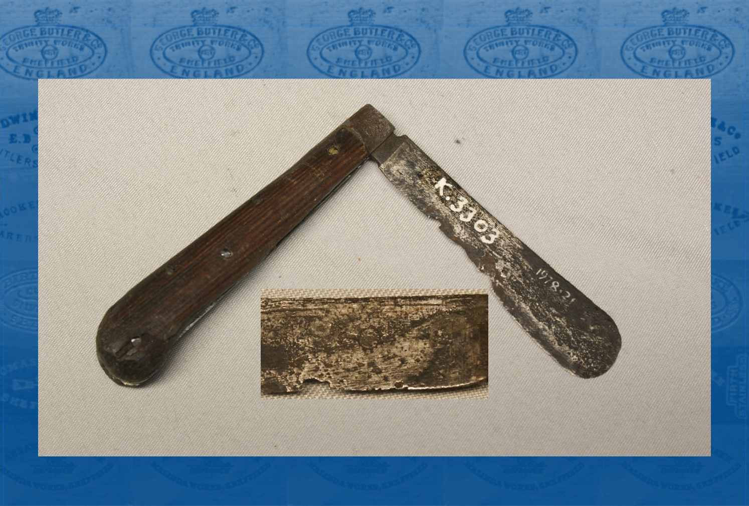 This old knife was recovered from the River Thames in the Queenhithe area and is believed to have been made c1750s.The mark on the knife (an orb) indicates that it was made in Sheffield, possibly by Stephen Dungworth however the age of the knife means that we are unable to definitively identify this knifemaker. ....