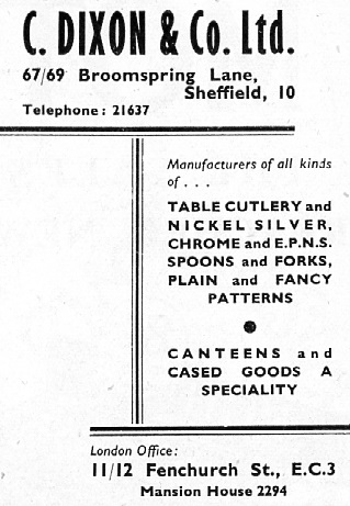 The first notice of this company in the press was a ‘wanted’ advertisement in 1921 for a young girl for finishing tea knives and fish eaters. The firm was based at 145 Eldon Street, where it operated as a cutler and silversmith. The owner was Christopher Dixon (1894-1961). He had been born at Dudley Street, Walsall, the son of Francis (a carter and later building labourer) and his wife, Margaret. By 1911, Christopher Dixon was a silver warehouseman, who was living in Heeley. In 1922, C. Dixon & Co first....