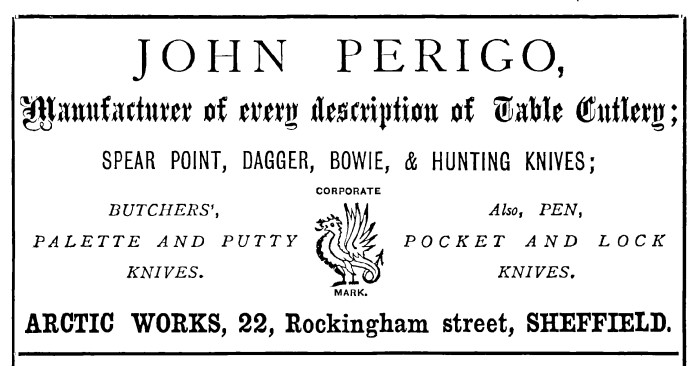 The name Perigo was rare in Sheffield in the nineteenth century. It is believed to have been the name of French ironworkers, who settled in the area in the 1570s. This branch of the family can be traced to John Perigo, a stag scale cutter, who worked for William Beardshaw in Garden Street. In 1820, he had married Sarah Bingham (1796-1849) and they had a son: John (1832-1902). John Sen. ended his life in 1841. An inquest at The Ball, Garden Street, heard that on the previous Tuesday m....