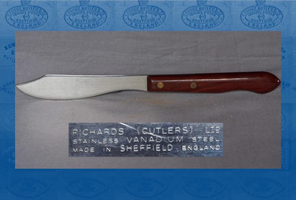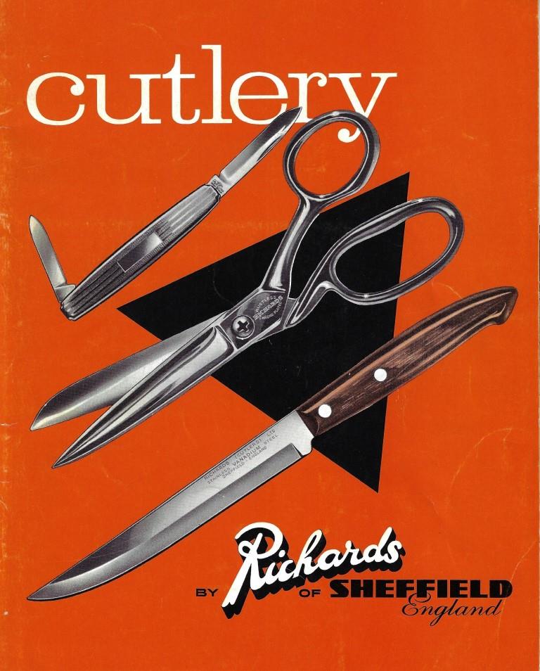 Richards was arguably the only twentieth-century Sheffield firm to make a fortune from what had been one of the cutlery industry’s staples – the manufacture of pocket knives. Significantly, the roots of the company lay not in Sheffield, but in that rival German cutlery centre of Solingen. In 1900, the brothers Heinrich and Johann Richartz had launched Gebruder Richartz & Soehne (Black & Punchard, 20191). They made pocket knives, scissors, and table cutlery, sporting a ‘LAMP POST’ logo. In 1932, descendants Paul Peter Richartz (1888-1961) and Stephan Richartz (1898-1974) started a cutlery factory in Broomhall Street. Helped by their colleague and engineer Wilhelm Muller (1905-1982), machines were imported from Germany. The company was registered as Richards Bros & Sons (with a trade mark picture of a Tent, besides the Lamp Post). The staff at first was less than ten, but by 1934 this had increased to 134, and by 1938 it was 300. Besides pocket knives, the firm sold stainless steel kitchen knives and fish eaters, some of which were made in Art-Deco designs with bakelite handles. Richards registered the trade name ‘BUTILITY’ for these products, which were ostensibly made by Butility Cutlery Co Ltd, Broomhall Street. Export markets in the late 1930s included Australia, where Richards advertised stainless kitchen cutlery.