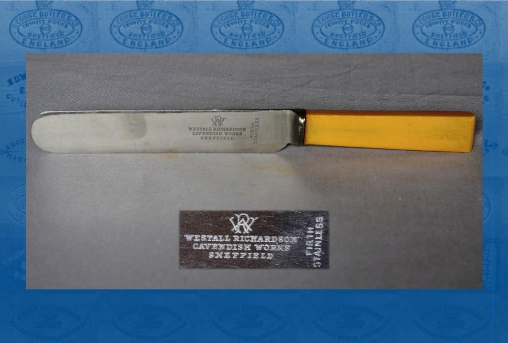 In 1929, a private limited company – Westall Richardson Ltd – was registered at Cavendish Works, Brookhill. The initial capital was £8,000 in £1 shares. Westall Richardson was permanent governing director, with 4,000 shares, and Minnie was the secretary (Sheffield Daily Independent, 12 February 1929). The firm became a specialist in stainless table cutlery, marked ‘LESTAIN’. But it still manufactured hand-forged provision and butchers’ knives and depended on the tried and trusted methods. A trade journal noted that in Brook Hill, not far from the University: