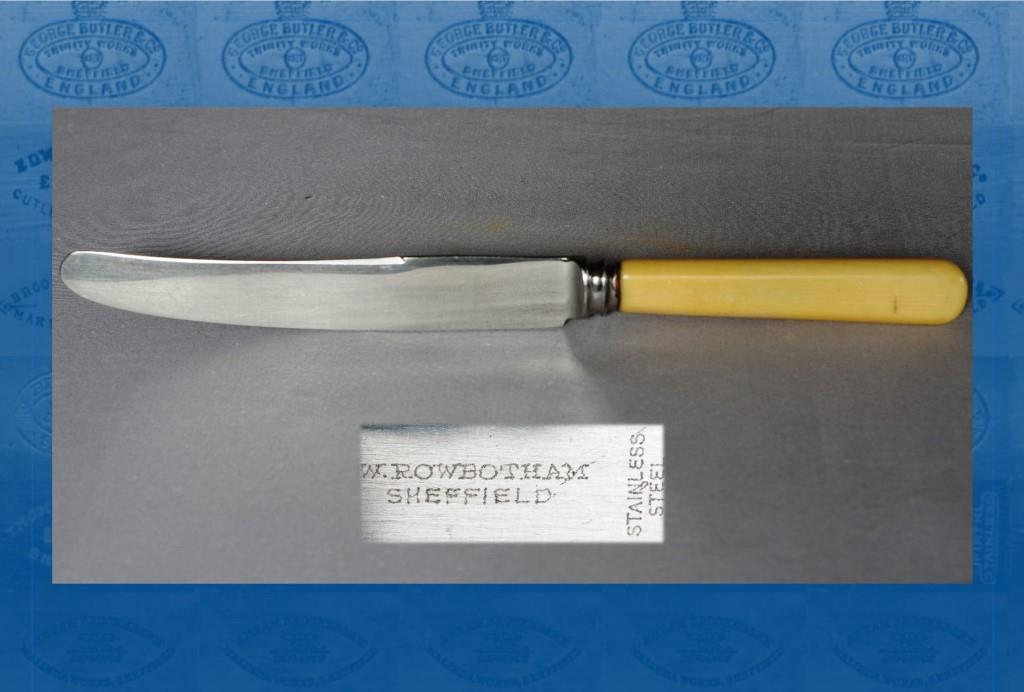 This firm should not be confused with Wingfield, Rowbotham & Co. Both appeared in directories in the 1920s, but apparently were separate concerns. Wingfield Rowbotham, cutlery manufacturer, appeared in the late 1920s in Eyre Street. A decade later the address was 36 Howard Street. In 1950, an advertisement in The Ironmonger Diary described Rowbotham as a manufacturer of a variety of cutlery: tableware, butchers’ and sheath knives, and paint and putty knives. The firm was listed as late as 1972, but then apparently ceased trading.