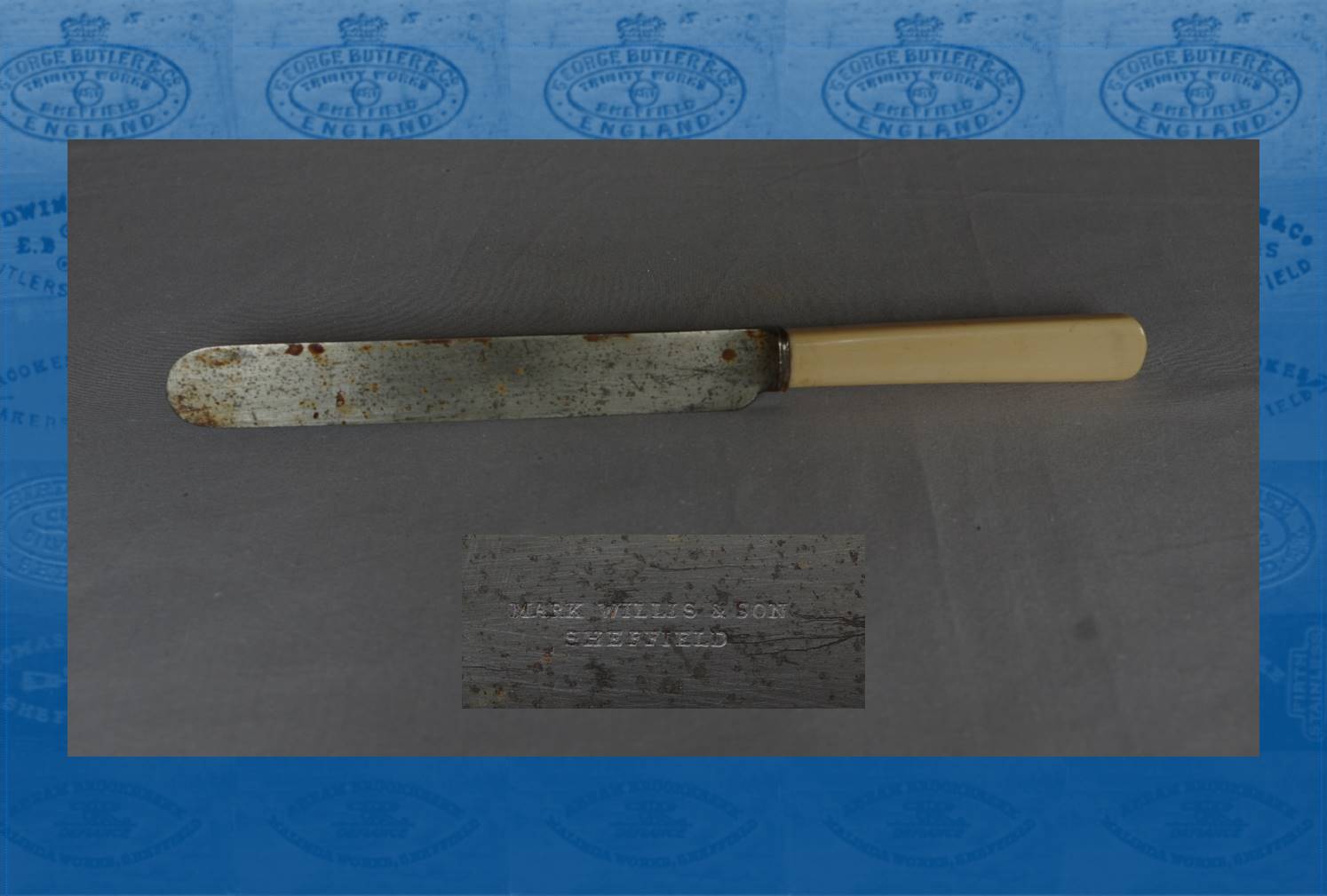 Mark Willis (1842-1915) was born at Melton Mowbray, the son William Willis, a tailor, and his wife Ann. Aged thirteen, he came to Sheffield to learn silversmithing at W. W. Harrison, which was then in Pepper Alley. He became manager. After a brief spell at Birmingham, he applied for a job at Hutton’s, but he considered the pay so poor that he decided to go-it-alone. Apparently, his brother (a steel maker) advised against doing so, but with the help of Joshua Maxfield he started a workshop at Exchange Gateway. In 1875, he registered a silver mark from Exchange Works, Fargate. In the early 1880s, he moved to Tudor Place, where in 1881 he employed five men and four boys. His residence was Poplar Villa, Oakdale Road. In about 1889, he moved his silver and electro-plate business to Exchange Works, Rockingham Street.
