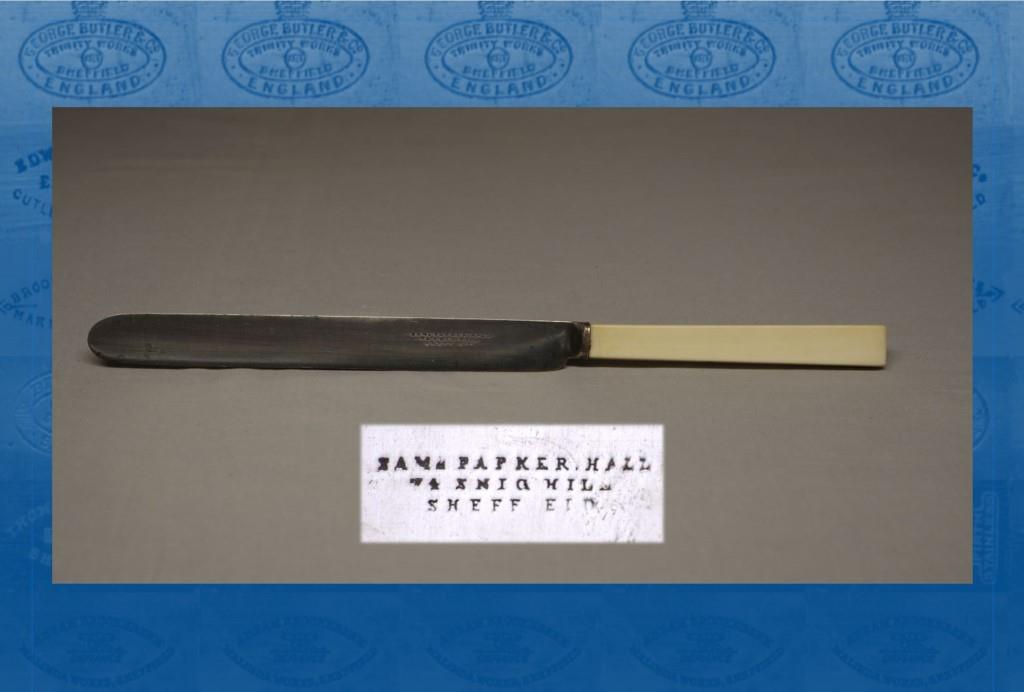 Samuel Parker Hall (1817-1888) was born in Aberdeen, the son of Aaron Hall and his wife, Margaret Brebner. His father was Sheffield-born and worked as a hatter and hat dealer. In 1841, Samuel was enumerated in the Census as a razor manufacturer, living in Westbar and trading in Townhead Street. His career did not begin auspiciously. In 1841, he was forced to make a humiliating public apology and pay a fine of one guinea to the Sheffield Dispensary for copying the name and mark of James Johnson (Sheffield Independent, 4 December 1841). Two years later, when he was a razor manufacturer and general dealer in Birmingham and fancy goods in Westbar, he became insolvent. He resumed his career as first a razor manager, and then cutlery dealer in Snighill. In 1871, he was a razor manufacturer, employing five men. His surviving razors carry the stamp, ‘Saml Parker Hall’.