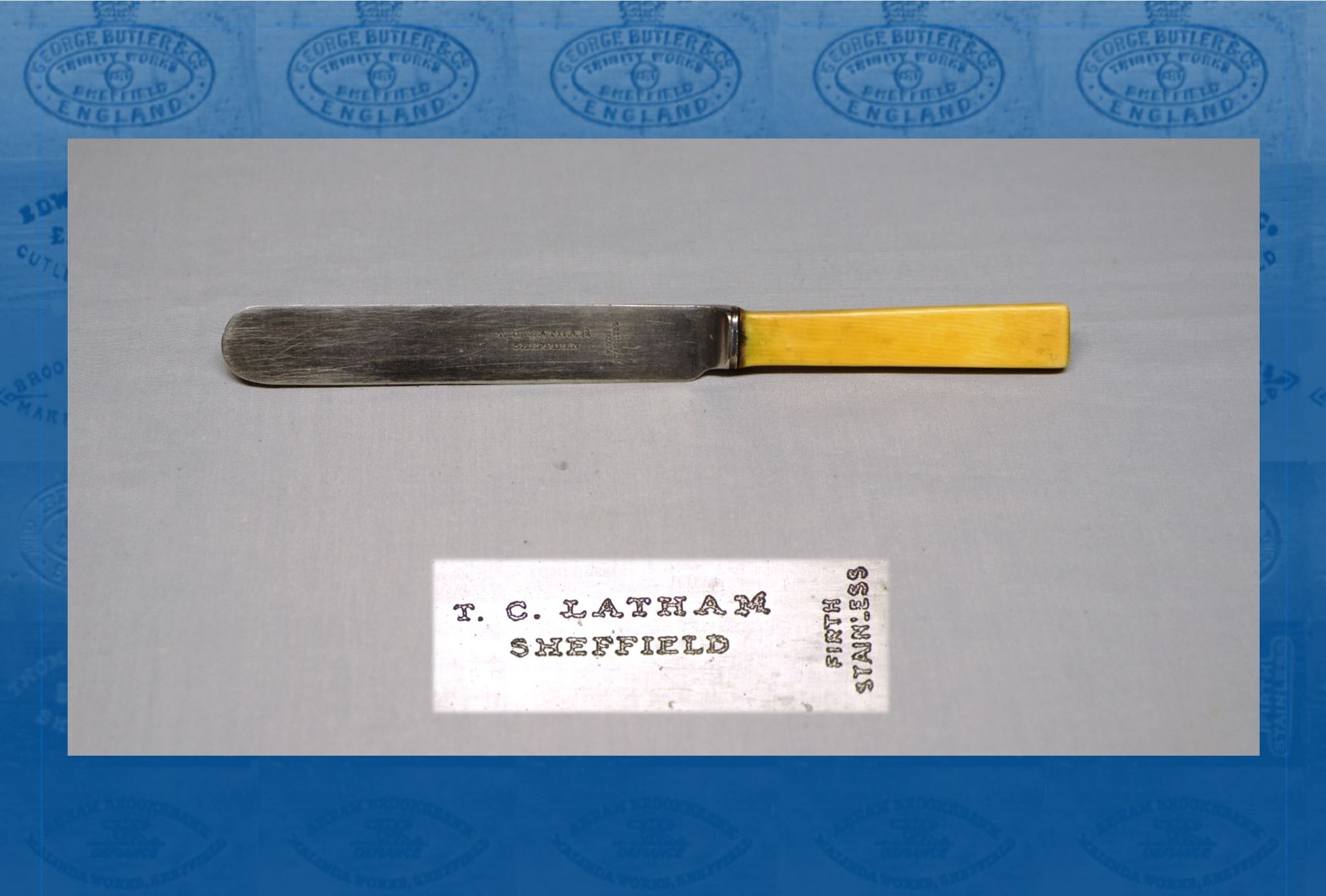 Thomas Charlesworth Latham (1880-1937) was first listed as a cutlery manufacturer in a Sheffield directory in 1922. He was the son of George Edward Latham (1849-1902), who was a silversmith’s clerk (and later manager for Walker & Hall), and his wife, Emma née Staniforth. His father died on 13 October 1902 and was buried in the General Cemetery (leaving £485). Thomas also became a cutlery manager and then started his own business at Napier Street. His partner was Frank Stirrup (1887-1947), the son of a pen-blade forger, whose experience was in the pocket-knife trade. Their venture proved short-lived. In 1926, Latham and Stirrup filed for bankruptcy, with debts of £454. They blamed the ‘slump in trade, small profits, heavy expenses, and competition’ (Sheffield Daily Telegraph, 15, 22 April 1926). Latham later became a caretaker and died in 1937 at Sharrow Lane Council School. His unconsecrated burial was on 6 December 1937 at Abbey Lane Cemetery.