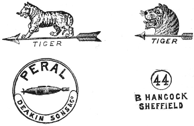 William Arthur Colley (1868-1916) and Francis Harold Colley (1858-1936) were the sons of Francis William Colley (1829-1881), and his wife Sarah. F. W. Colley operated Meersbrook Tannery and left £20,347, when he died in 1881. Francis Harold took over his father’s business, while William Arthur became a cutlery traveller (visiting South Africa and South America). In 1899, William launched W. A. Colley Ltd (capital £20,000) at Titanic Steel Works, No. 76 Arundel Street, as a ‘manufacturer’ and merchant in steel, files, cutlery, and tools. He acquired Deakin, Sons and its ‘TIGER’ mark; and registered a silver mark in 1902. Other Colley marks included ‘WALTER WARRINGTON’, ‘PERAL’, and ‘B. HANCOCK 44’ (perhaps Benjamin Hancock). In 1900, he organised a cutlery fund for the prosecution of the ‘unscrupulous foreigner’ (in other words, Germans) who counterfeited Sheffield marks (Sheffield Independent, 6 January, 31 May 1900). He also complained about the lack of support from the Company of Cutlers – a complaint rebutted by Master Cutler Robert A. Hadfield (Sheffield Independent, 13 January 1900).