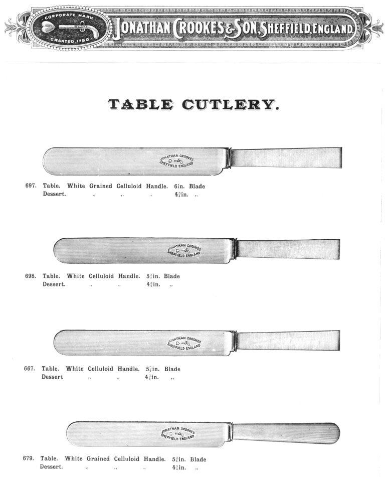 By 1839, Jonathan Crookes & Son had moved to Eldon Street, where it remained until the end of the nineteenth century. The firm claimed to manufacture ‘superlatively finished Pen, Pocket, and Sporting Knives, Razors, etc.’, including in the 1830s and 1840s ‘fly open knives’ (switchblades) and Bowies. One of Crookes’ switchblades can be seen in Punchard and Fuller (2012). Eldon Street bounded part of Wostenholm’s Washington Works and both companies looked across the Atlantic for orders. The Sheffield Daily Telegraph, 15 August 1892, reported: ‘Though the goods of Jonathan Crookes & Son were approved wherever known, the name became peculiarly identified with the United States’.
