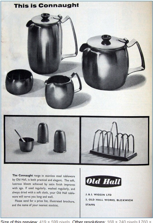 More design awards followed and by 1965 sales peaked at £1 million and coincided with the production of the millionth stainless teapot, The company continued to grow via various acquisitions until 1970 when it was sold to The Prestige Group, then probably the largest manufacturer of housewares excluding North America. More new products were introduced, the range for in-flight 'dining' probably used by every major airline.