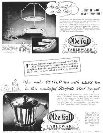 During World War 2 Wiggins again switched to war time production and after the end of hostilities faced disruption and delay in reverting to the manufacture of tableware, made worse by shortages in the availability of stainless steel. New designs were developed and sales continued to grow, particularly the volume of exports.