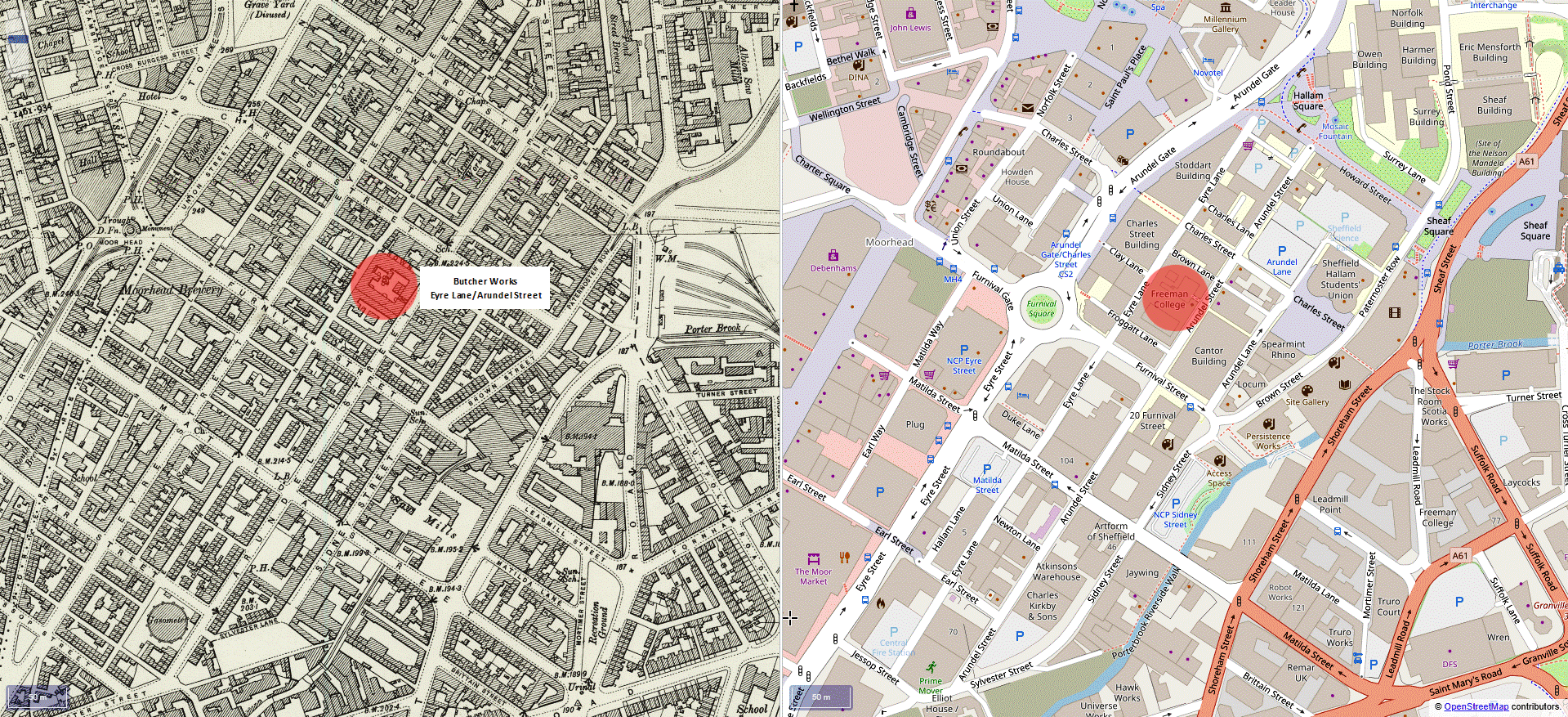 In 1826, William and Samuel launched Butcher, Brown & Butcher (with John Brown) at Eyre Lane and Charles Street. In 1830, that partnership was dissolved and henceforth the firm became ‘William and Samuel Butcher’, or more simply ‘W. & S. Butcher’. Between the 1830s and 1850s, the business expanded steadily, as the Butchers acquired additional steel-making capacity, workshops, warehouses, and steam grinding wheels in Furnival Street and Eyre Lane. In the 1840s, the brothers also invested in tilting, rolling, and forging capacity at Philadelphia Steel Works, Neepsend, which was close to the River Don.