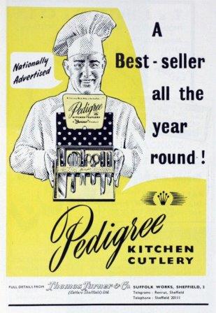 Turner’s apparently employed about 800. In 1915, it became one of the first to market stainless table and kitchen cutlery (trade marked ‘HYGIENIC’). At the end of the War, the company was registered as Thomas Turner & Co (Sheffield) Ltd, with a share capital of £50,000 in ordinary shares. None of these were offered to the public, though there was a public issue of £50,000 debentures. The prospectus described a business that covered 4,507 square yards, with departments for crucible steel, files, saws, cutlery, and electro-plate. Incorporation had partly been triggered by the death of Hobson’s two sons in the War. In 1919, Turner’s joined Sheffield Cutlery Manufacturers Ltd, an amalgamation led by Needham, Veall & Tyzack.