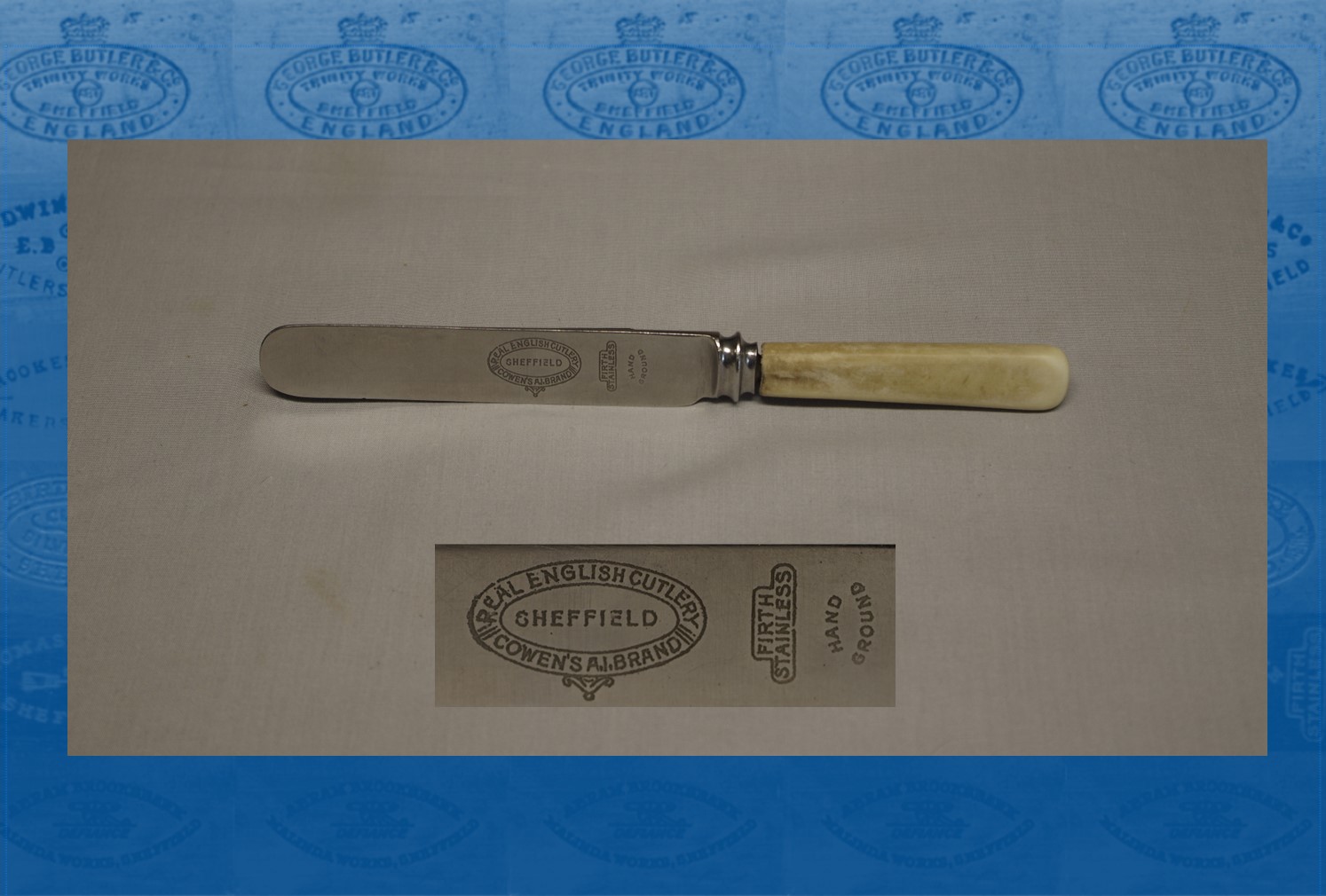 After his death, George Henry was a table knife manufacturer in Button Lane, with a residence in Broomspring Lane. In 1903, the local newspaper reported a fire at G. H. Cowen’s, which occurred in a ‘crowded part’ of Button Lane. The workshops consisted of ‘several rather small rooms’, which were stuffed with valuable cases of carvers hafted in xylonite and ivory (Sheffield Daily Telegraph, 12 June 1903). By 1916, he was located in Rockingham Street, where he advertised for table knife cutlers and grinders for carvers. George Henry sailed to New York in 1916, 1918, and 1922. He moved to Grimsby to work as an importer. He died on 14 May 1922 at Grimsby, leaving £745. His brother, James Roger, of the Plough Inn, Upton-on-Severn, died on 17 May 1923.