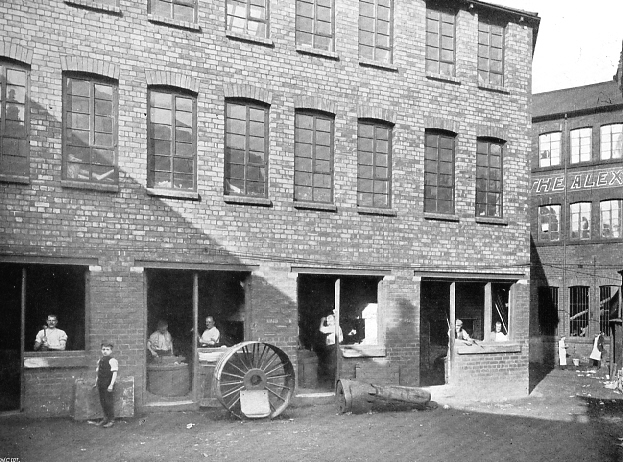 On the other hand, Portland Works (if the photographs can be believed) was clearly a self-contained factory. Mosley had his own electro-plating tanks, which were ‘large enough to plate a lamp-post’; he had skilled silversmiths and polishers and burnishers (many of them women); and he employed hand-forgers and blade grinders. The power was supplied by six 80-HP gas engines.