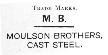 The later history of the Moulson business involved mostly William Henry and John. The latter was born in Sheffield on 9 May 1828. His mother, who died in 1838, was a dedicated Wesleyan. Presumably, John’s early training was in the family firm, where his father was a partner. However, in 1849 John left for New York to become a hardware agent and settled in Brooklyn. He not only represented Moulsons at its office in Pearl Street, but also other companies. According to Goins (1998)2, Moulson Bros sold Bowie knives, besides other types of cutlery, using the mark ‘XLNT’ (a mark associated with John Wragg & Sons). During the American Civil War, John started on his own account in New York. In 1868, he was listed in a Sheffield directory as a merchant and manufacturer of table and spring knives, and edge tools, at Globe Works, Penistone Road. He followed a string of cutlers at Globe Works – Ibbotson Bros, Walters, and Unwin & Rodgers – who relied upon the US trade. He was described as an ‘American merchant’.