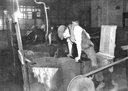 The results of this expansion can be seen in a catalogue published in about 1920. The frontispiece depicted another multi-storey addition to the Works, which also faced onto Matilda Street and was likewise linked by an enclosed walkway over the Porter Brook. The firm had acquired another ‘name’: silverware maker Walter Latham & Son. Deakin’s had its own electro-plating and gilding tanks, stamping shops for spoons and forks, silverware departments, and buffing rooms. The factory had a grinding ‘wheel’ for table cutlery, which according to one report had been modernised to comply with government regulations (Sheffield Daily Telegraph, 3 May 1920).
