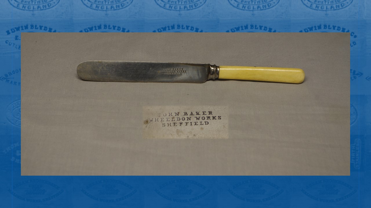 A manufacturer of table and spring knives, John Simkins Bradley Baker was listed in Solly Street in 1868. He was born in Mansfield, Nottinghamshire, in about 1845, and was probably the son of Joseph (a shoemaker) and Eliza Baker. John first worked in a cutlery warehouse. Later he described himself as a master cutler. In the 1870s, he was at Wheeldon Works, Wheeldon Street, and lived in Red Hill. Baker’s advertisement in the 1879 directory highlighted table cutlery. By 1883, John Baker & Co was selling electro-plate (a silver mark was registered in 1890). Baker lived in Brook Place, Brookhill, and then Slinn Street. In 1885, he bought the Phoenix mark of Horrabin for £52 and the workshops in Wheeldon Street became Phoenix Works. He also used the ‘MERIT’ (acrobat) and ‘SHEPHERD’ marks.