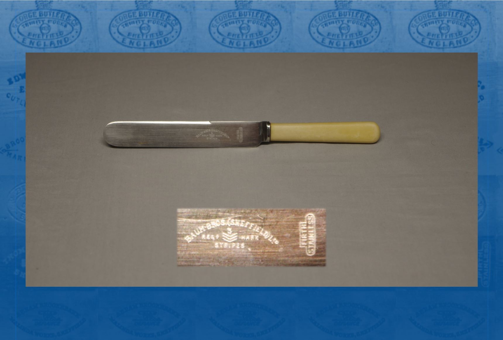 In 1872, Maurice Baum opened for business in Sheffield as a dealer in jewellery and fancy goods (including cutlery) in Pinstone Street. In the following year, he married Rachel R. Gluck (1854-1913), at the Synagogue, New Church Street, Sheffield. Their sons, Louis (1875-1955) and David (1876-1951), were born at No. 32 Pinstone Street. By 1880, Baum was based at Albert Works, a four-storied building in Norfolk Street. A silversmith (registering silver marks in 1884 and 1893), Baum produced plated goods, such as butter knives, desserts, and fish carvers. In the 1880s and 1890s , the company traded in table cutlery, and especially in electro-plate and meat carvers mounted in silver. It also introduced a white metal, ‘SILVERINE’. About 130 hands were said to be employed at Albert Works in the early 1890s. The firm also had an agency at Hatton Garden, London (The Century’s Progress, 1893).