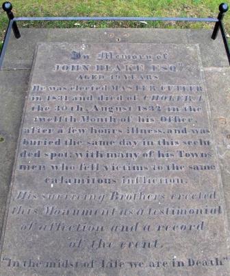 The Blake family came from Wath, near Rotherham, and moved to Sheffield in the late eighteenth century. By 1787, Thomas Blake Sen. had founded a file making business, but his sons – John and Thomas – later became merchants. John Blake (1783-1832) was Master Cutler in 1831. He laid the cornerstone of the new Cutlers’ Hall in June 1832, but within ten weeks succumbed to the cholera epidemic that swept Sheffield. He died after only a few hours’ illness at Port Mahon on 30 August 1832. The epidemic killed over 400. Blake was buried on the same day as his death in the cholera burial ground, Norfolk Park, where his status afforded him an individual tomb and gravestone (separate from the mass grave), which was laid by his surviving brothers.