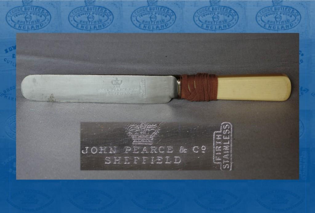 In the Census (1851), John Pearce was a razor manufacturer in Angel Street, who employed nine men. He died from ‘softening’ of the brain at Andover Street on 23 March 1860. He was buried in the General Cemetery, leaving under £800. Henry Hobson continued to trade as John Pearce & Co, cutlery dealers of Queen Street, until the late 1860s. As late as 1919, Henry Hobson & Sons used the Pearce name and ‘JP’ mark from Eyre Lane.