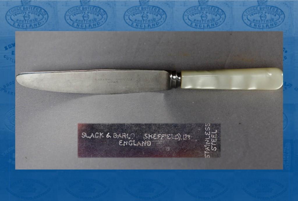 Frank Barlow was born on 23 August 1912. By 1939, he was working in a cutlery warehouse. Slack & Barlow (incorporated in 1947) was based at Sycamore Street and Eyre Lane, where directors Frank Barlow and M. Barlow (probably Frank’s wife, Mary) produced flatware, table and pocket knives, and cases of cutlery for the mass market (marked ‘BARSLAC’). In 1958, they moved to the new Silverpride Works in Matilda Street, which traded into the 1980s. Herbert Housley recalled: ‘we traded between each other buying each other’s specialities. During the many years that I knew the owner, Frank Barlow … I never met a Slack, nor did he ever mention the name. I understand that Frank had been a manager in the spoon and fork department of Mappin & Webb before going into business on his own. It was always a thriving and prosperous company with a terrific trade in Australia where their inexpensive Silverpride EPNS, in attractive gift boxes, became best sellers. After leaving high school his son, John, joined the company’ (communication to author). The firm was dissolved in 1994.