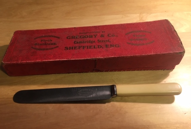 The founder, Walter Gregory (1880-1957), was born in Ecclesfield, the son of John (a table fork grinder) and his wife, Jane. In the Census (1901), Walter was an engine-fitter. In 1911, he was living at Hull with his wife, Alice, and working as a theatre musician. By the end of the First World War, he had established Gregory & Co, a table knife manufacturer, in Cambridge Street. At that time, though, Gregory was perhaps best known for his musical accomplishments, as a cellist and conductor. One of his musical friends from Ecclesfield was fellow Methodist Tedbar John Booth. Gregory invited him to become a director at his company. After Booth’s death in 1932, the enterprise was registered in the following year as a private limited company, with £3,000 capital. Walter Gregory was the managing director; T. J. Booth’s son, Randolph, was a director and secretary. The address was British Works, 57 & 59 Eyre Street. After the War, Randolph founded R. Booth Ltd. Gregory continued as a cutlery manufacturer until he collapsed at his factory on 23 September 1957, aged 77. Obituaries noted his various outside interests, which also included chess (he was a leading player in Sheffield). He was buried in unconsecrated ground at Ecclesfield Cemetery. He left £1,120. His company soon ceased trading. The trade mark was ‘LUTE’.