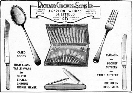 The owner of Groves’ is unknown. An advertisement in The Ironmonger Diary (1950) depicted – alongside the ‘USE’ mark – a cutlery canteen, forks and spoons, stainless table knives, a serrated kitchen (or butcher’s) knife, and also mentioned scissors and goods in electro-plate. Few, if any, of these products would have been made by Groves’. By the 1960s, Richard Groves & Sons Ltd was a virtual shell (albeit with a reputable mark) owned by Charles Havenhand. Herbert Housley bought the ‘company’ from Havenhand for £250. Housley (2011)3 noted that Groves’ name and mark still had prestige, particularly in export markets.
