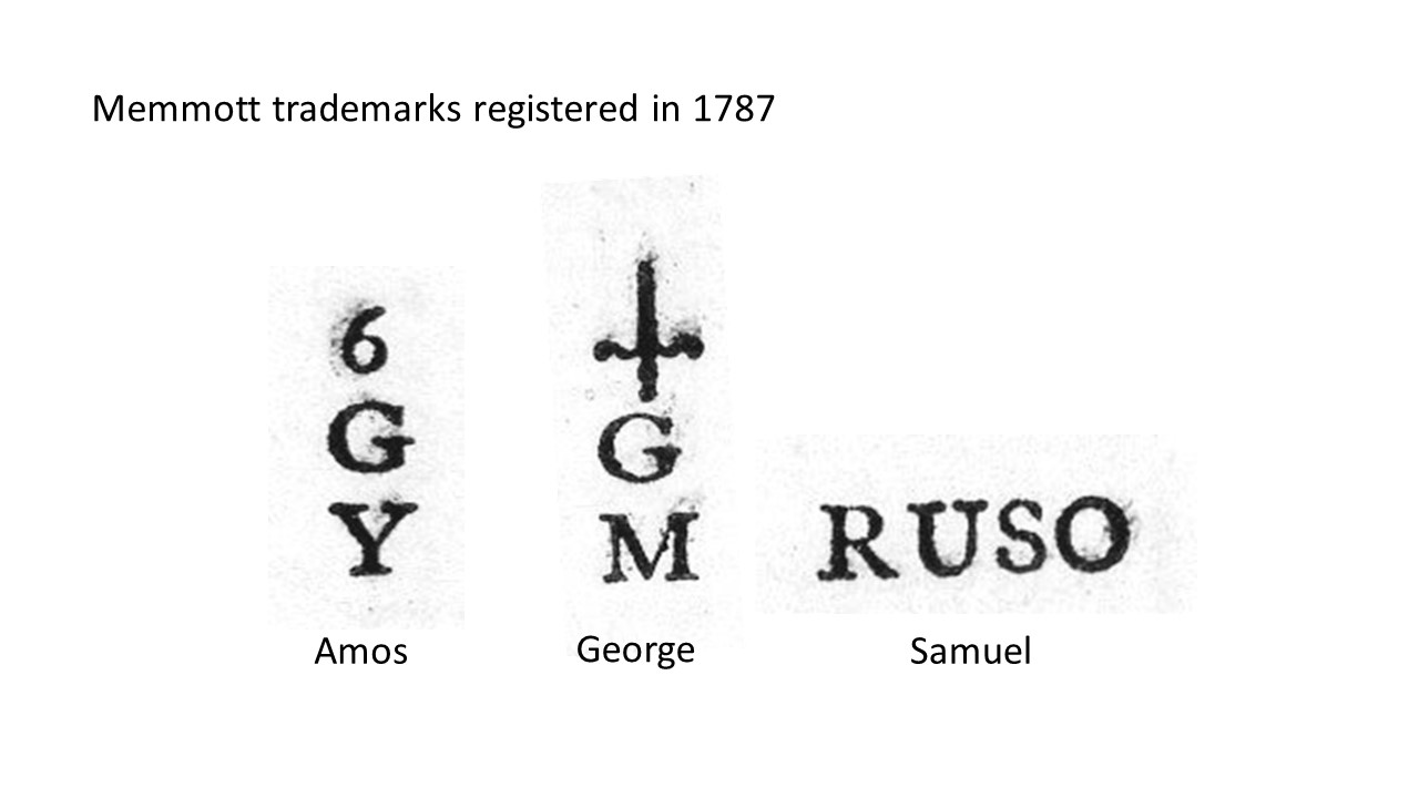 This family appeared in the Sheffield directory (1787) as manufacturers of pocket knives in Heeley. The cutlers were: Amos Memmott (trade mark ‘Y’ and reversed ‘G’); George Memmott (trade mark ‘M’, ‘G’, and dagger device); and Samuel Memmott (trade mark ‘RUSO’).