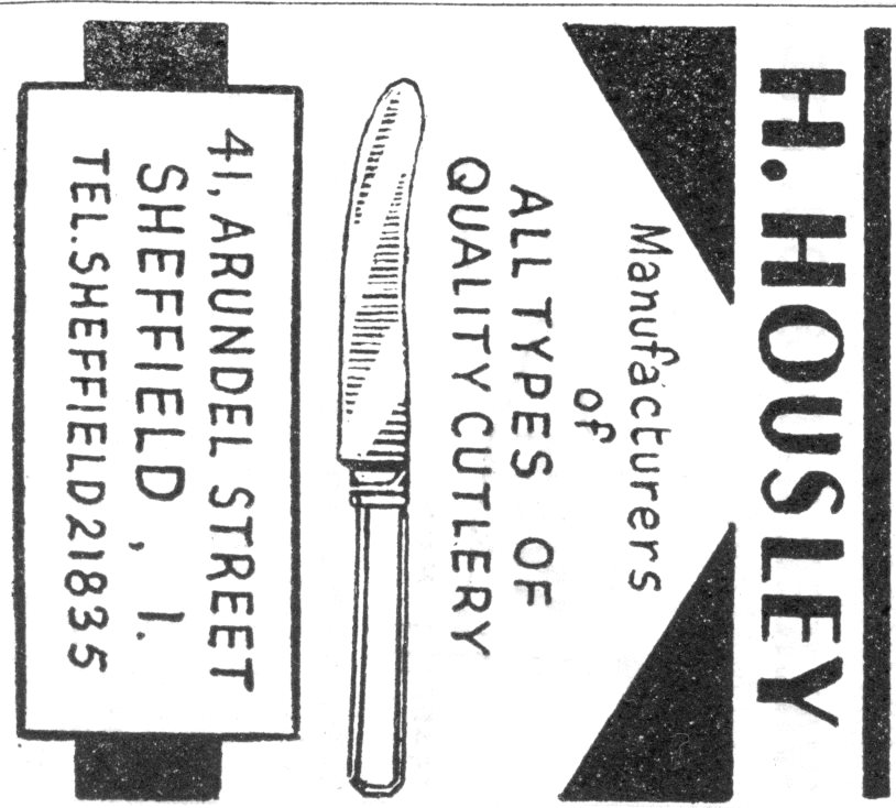 This firm originated in the little-mester operation of knife-grinder Herbert Housley (1899-1977). The latter’s father was a file cutter, but the Housleys had been knife grinders for several generations. Herbert (who married Annie née Dunn) rented a ‘wheel’ at the Randall Street factory of R. F. Mosley. They had three sons, of whom two – Herbert ‘Bert’ (b. 1925) and Barry (b. 1931) – were to join their father’s business. Herbert Sen. had a team of eight or nine workers (five of whom were skilled grinders) based in Randall Street. Bert joined the family firm as a 14 year-old apprentice in 1939.
