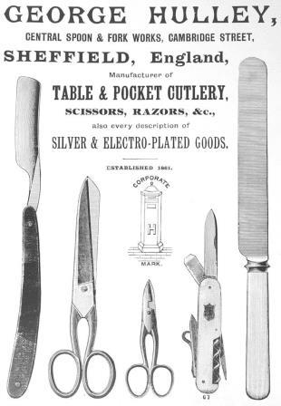 The business was left to Hulley’s manager, Thomas Morris, and continued to be listed at 245 Rockingham Street in the interwar years. After 1945, George H. Hulley was listed as a stainless cutlery manufacturer, Sykes Works, Milton Street. It apparently became defunct in 1960. The trade mark was a pillar box.